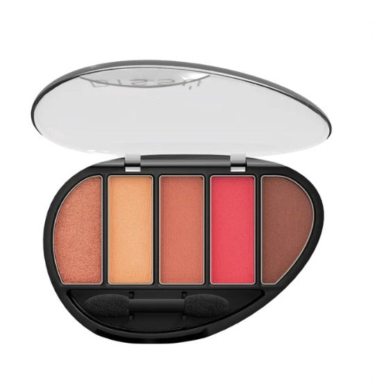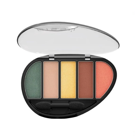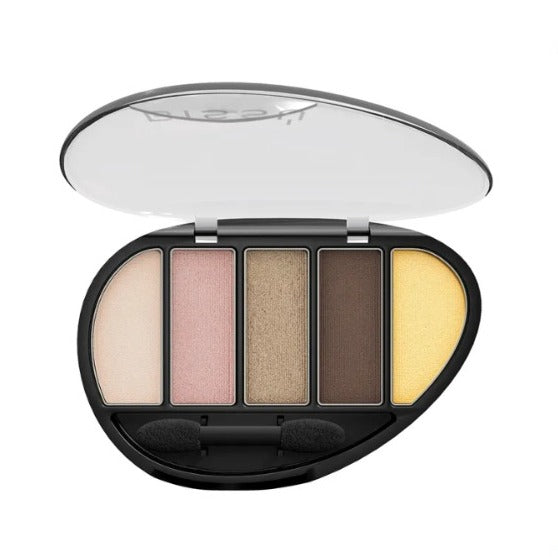 Quinteto de sombras de gran pigmentación con suave textura y diferentes acabados. Tamaño ideal para toda cosmetiquera por su envase de diseño práctico y ligero. Logra distintos looks con cada uno de ellos, son 35 combinaciones diferentes.